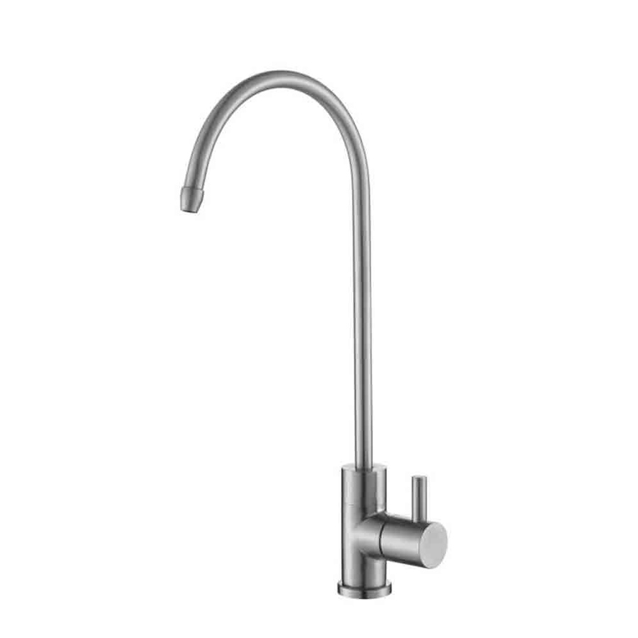 Aç kapa modelli Sus 304 paslanmaz çelik malzemeden üretilmiştir. Tezgah üzerine 12 mm çapında delik açılarak su arıtma cihazının temiz su çıkışından uzatılan hortum musluk alt bağlantısına takılarak arıtılmış suyu musluğa aktarmaktadır.